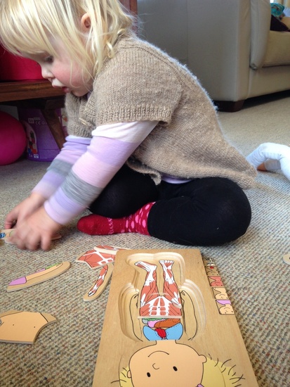 Mad about puzzles! The concentration is amazing. She will complete it and say 'done it' and wait for some reaction, smile and then tip it over and starts all over again. We can last at puzzles for a good 30min.