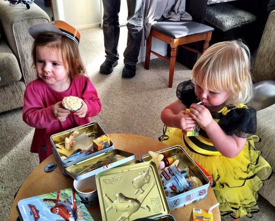 Olive loved going on a "picnic" with Violet at Alex's "tea party". They sat down together for the good part of half an hour enjoying their picnic.