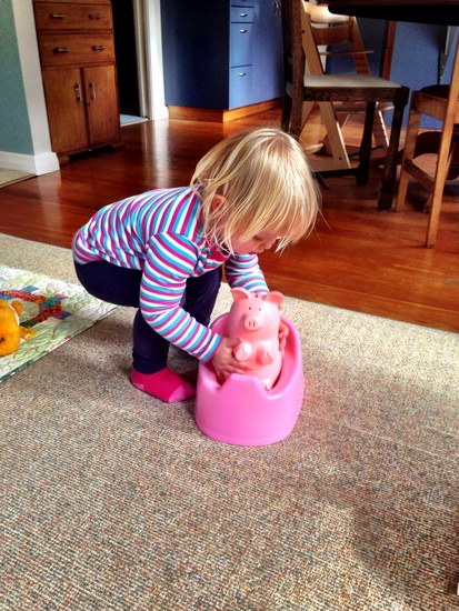 Piggy also goes to the potty these days. We have some success in the afternoons with the potty and no nappies. Mostly number ones and if we gently remind her, she often says yes or no if she needs to go. So proud.
