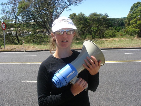Sarah on her second leg - the "Dangerous" and very long stretch of road