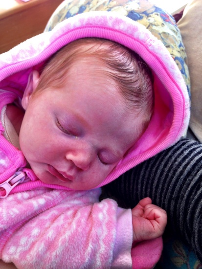 Doro comes the meet little Iris. Slept the whole time!