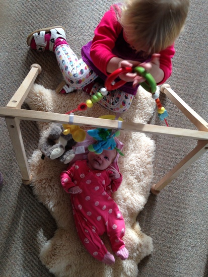 Olive wanted to hang under the gym with Iris this afternoon. She thought Iris was very funny with goos and gaas and accidental touching! Asking her 'to do it again' Some lovely kissing and cuddles too.