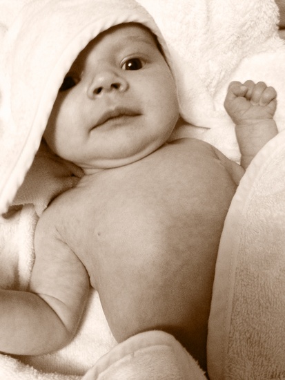 My little hot water bottle. Colic calm did the trick with our unsettled fleurie in the evenings.