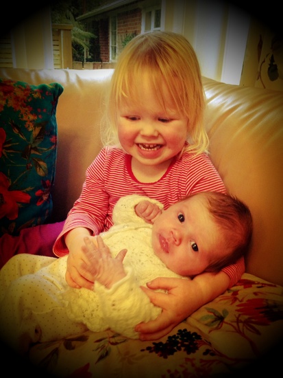 It's a hard road to a perfect sister shot! Olive has been really gentle with iris and most days asks to hold iris on the couch.