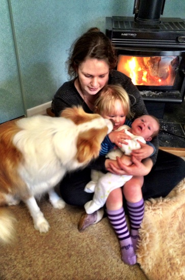 Lyon has been a little more interested in iris. He was very worried when I was in labour and would come and sit by me as if to protect me.
