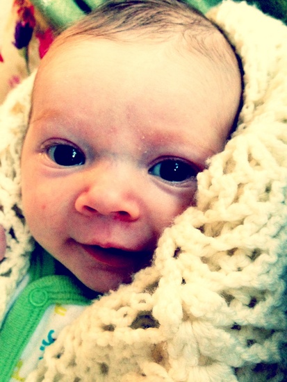 Cuddles with Nan. 3 weeks old and still a happy little sleepy baby. May it last!