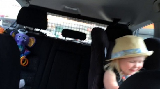 Olive found Tom's hat and my sunglasses beside her while we were driving. She puts them both on and states "I'm Ginny" "I'm Tom" not sure if she is mocking us or not"¦ very funny.