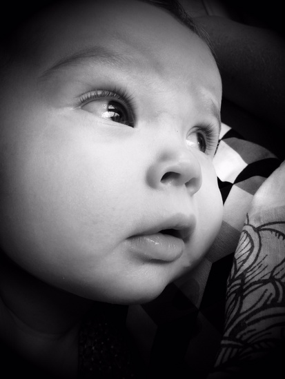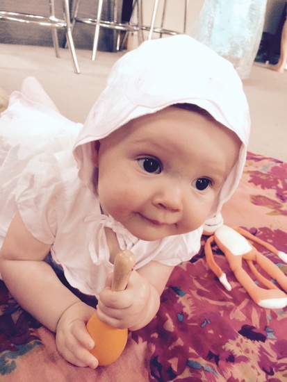 Iris Ann in her great Aunty Pat & Uncle Peter outfit which is gorgeous, doing what she does best - putting something in her mouth!