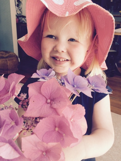 Enjoying the summer flowers (olive's favourite colors) and Iris having a ball with the French doors open while we potter in the garden.