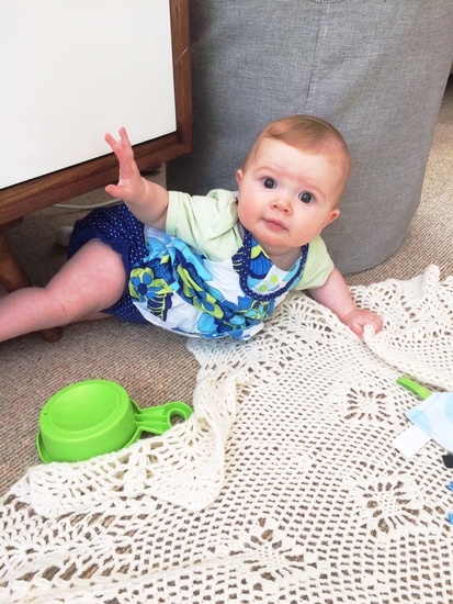 A hot day. With Olive under the weather with strep throat we kicked around home and had a lovely afternoon cooling off in the paddling pool. Iris loved exploring the deck, yes she is moving around, circular movements with feet pushing is quite affective.