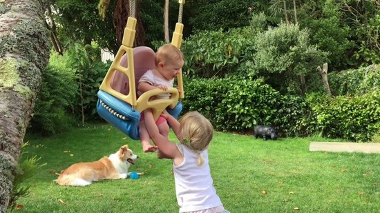 Backyard Swinging! Not the best spot for the swing, but it works for now.