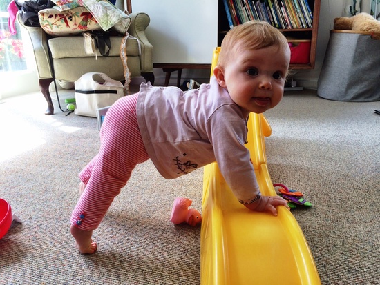 Iris has hit a few milestones all at once these past few days. Clapping at 10pm at night (it cheered us up- cheeky monkey) taking a few crawls on her knees and now pulling herself up on things!