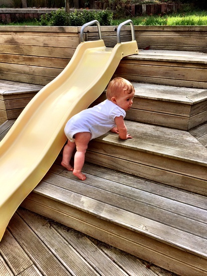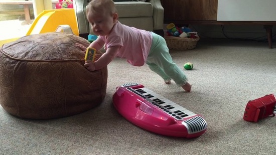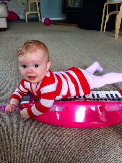 We bought the piano down to Iris's level and she had a ball. It has been a joy to watch Iris master sitting and discovering the world that comes with it. She sat for ages by her postbox flipping and dropping envelopes for ages. Drawers are great fun and she beelines for the deck at every opportunity.