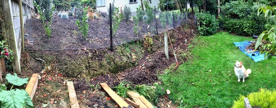 What have we just done!? Start of the almighty back retaining wall / fence project. Temp fence and ripped out the old hedge/fence.