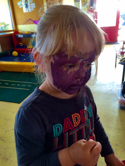 A lovely busy day for Olive at Playcentre. Started with bunny face painting followed by full purple face coverage, which she spent ages at. Dress ups, drilling wood, balloon egg deconstruction with sticky glue and end of session story time which Iris joined in on. A really fun independent busy day - I hardly saw Olive!, mummy even got a coffee while helping the boys saw some wood!