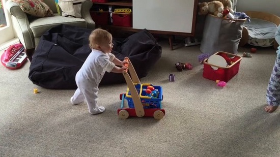 Iriee loves doors, and placing things inside books at the moment, she can find me anywhere in the house and loves being mobile. She is getting on her tippy toes to reach things too.
