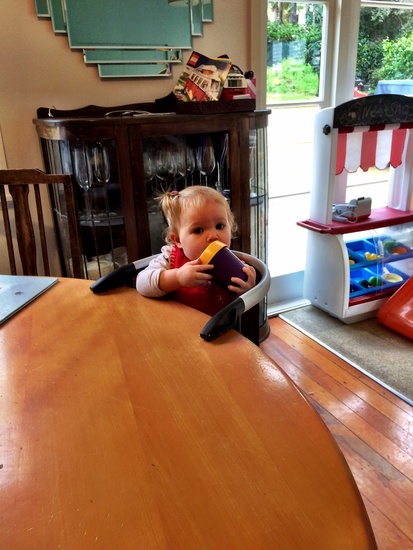 Iris's favorite spot. Sitting on the chair in her room and turning on and off the lamp.