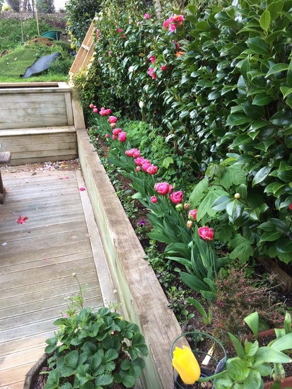 Pink tulips! They all came out and look great. Now what to do with them next year? Tag: garden