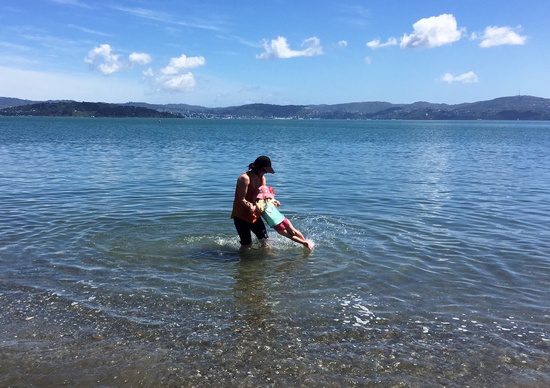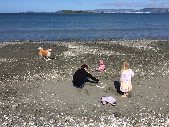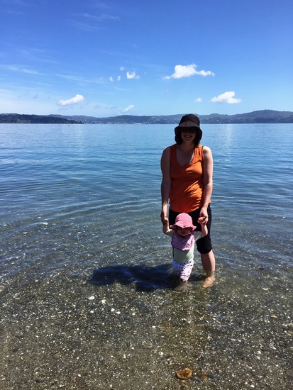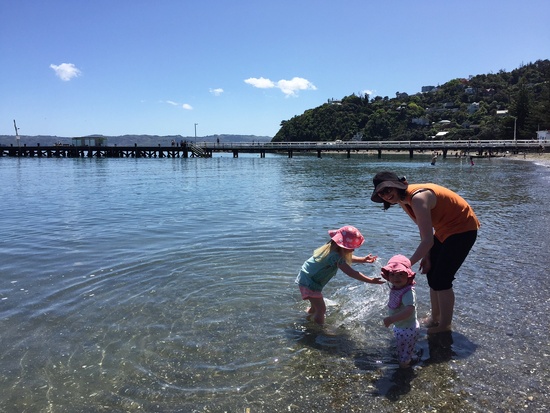 A stunning long weekend spent relaxing with family. It feels like we haven't relaxed for ages! A lunch with great Aunty Jenny & Colin, & Aunty Lauren with relaxing in the afternoon. Next day we enjoyed days bay with pizza, nan & grandad on the beach and were impressed by olive's confidence as she picked up a dead crab! Gave it a sandy bed, and had lots of fun in the water. Iris loved the water as well, a complete change of clothes for both, it was warm enough to swim after all!