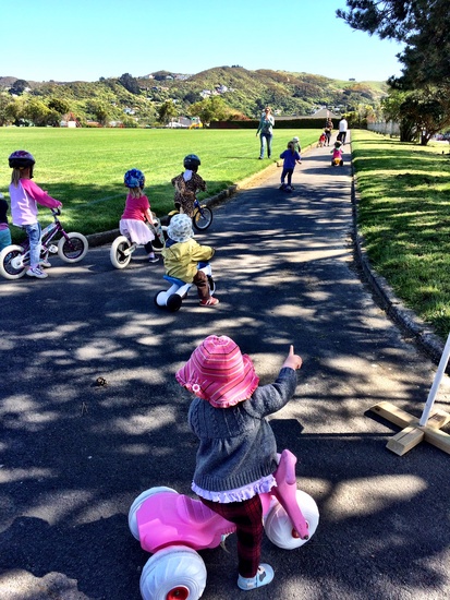 Iris flying solo at Playcentre without olive! First session and Iris was off but mostly getting wet at the taps (three changes and then we started borrowing!) she did pull (she did move the wagon) Eden and Elise too and managed climbing the mount by herself.