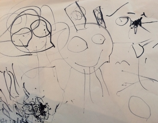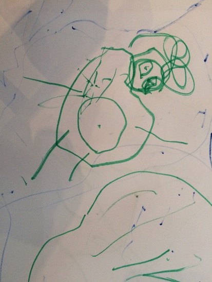 'Green lion with a belly button' by Olive Eliza Peck I included her bunny drawing too because the ears are rectangles! First time I've seen that!