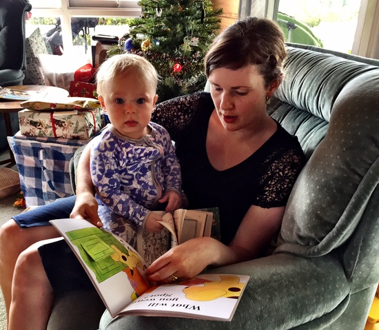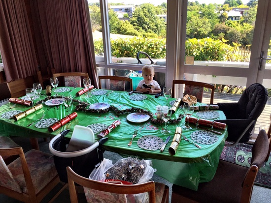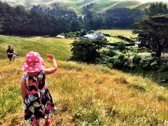 Waving to mummy (ants down below) after walking up the hill behind Andy and Nicky's place. Had a lovely New Year's Day BBQ with friends.