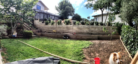 Wow. We have nearly been in our house 4 years and never cut back the trees. An unwanted guest of the furry ratty type in our roof forced our hand to do something. It was decided the branches was how it was getting into the house so with the big help of Grandad and Tom they cut back heaps in a short time while Nan kept the kids happy in the paddling pool. Thank you nan and grandad! It now has raised another problem of the clay bank which is very visible... Punga trees?... Yet another project!