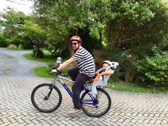 Testing out the $3.50 bike seat from TradeMe. Works a treat! This will take Iris off to KCC in style.