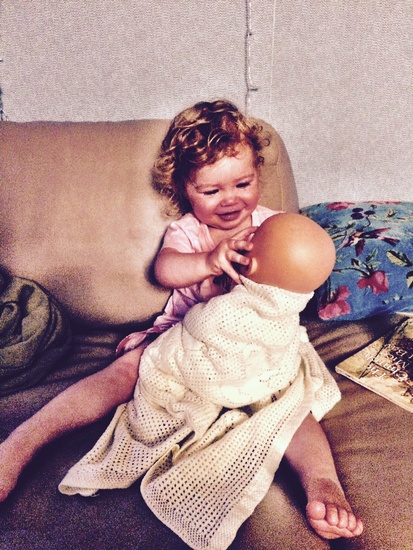 The babies at lunch and at play. Iris liked to push them round a bit.