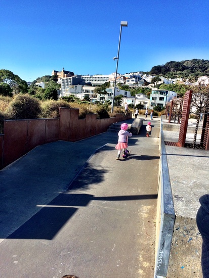 Olive and Freya got the hang of these ramps at Waitangi park, happy doing this for ages!