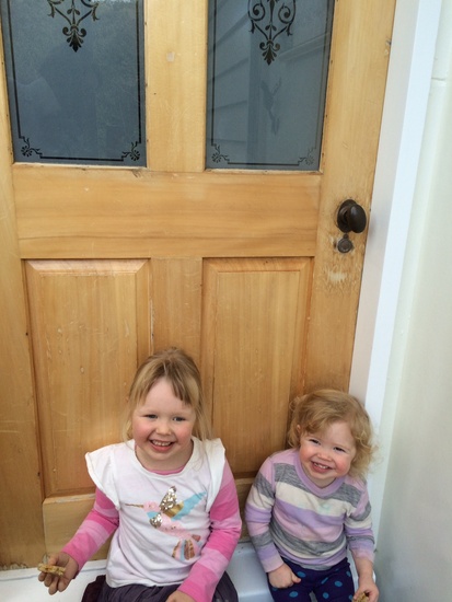 The usual spot before I open the door so they have to tumble and roll through the entrance. It seems to never get old... For some. These two are having a lot more fun playing simple games together, which is so rewarding to see. Olive helps out a little with Iris by helping her wash her hands and helping with shoes and the fact that Iris will find oli and ask for her help is awesome. Just a lovely bond growing.