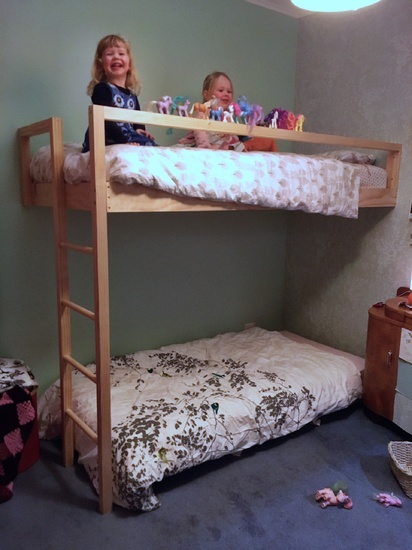 Bunk building in one day. $400 of timber, sketchup plan, father son duo and wala! Top bunk is built. The girls are super excited, mummy is sad iris is moving out of her room but onwards and upwards! Now to whitewash the bunk.... in oh 2 years most likely!