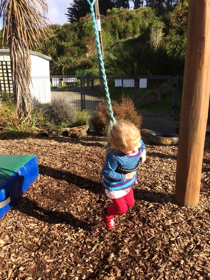 Second kindy drop off went well. Waved to me from the window and no tears! I wonder how Monday will go. Came back to find her on the swing yet again.