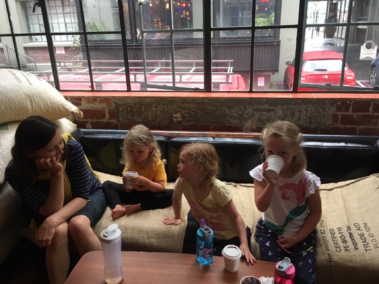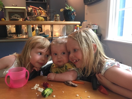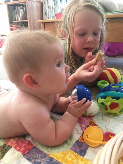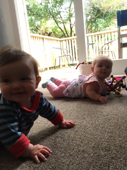 I now understand the feeling of being that parent who brings all three kids. Oh well it was fun. Juni and Ivy took turns in the high chair and Ivy showed Juni how to crawl!