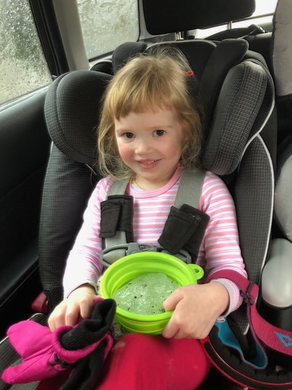 With blizzard conditions at the top we found a patch of road snow for the kids to play on. Which they loved!