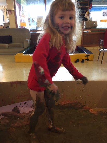 Playcentre brown they call it. Iris made it in the paint pit. First sink bath at Kpc after the very enjoyable event. Juni got exploring, ate paint, found the sandpit, we even managed to walk/ bike to Kpc until floppy leg syndrome set in and then just walked!