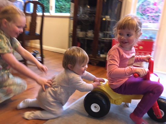 Kpc excursion to story place. One minute Juni pulling the vege, the next in them! They both had fun, iris enjoyed playing with Chloe