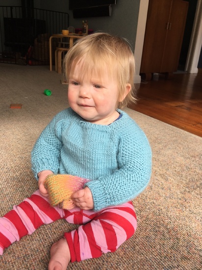 My first jersey! Definitely won't fit her next winter but I'm pleased I finished!
