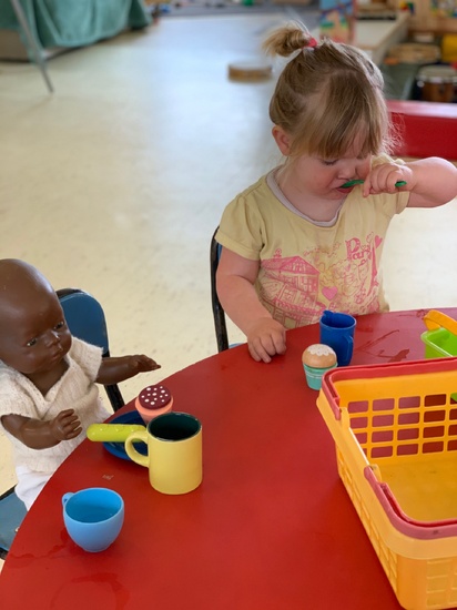 Kpc: Iris came to Monday session and the two had a lot of fun with bikes, feeding babies, dress ups and snails.