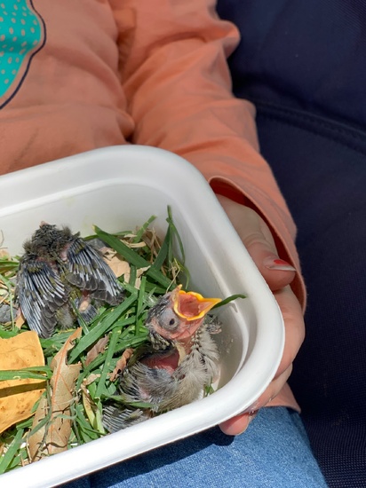 Bird rescue sisters, Olive found some baby birds who had fallen out of their nest after a windy night, we left one pair and watched from a distance as the mama bird was still feeding them, the other pair we took to the SPCA. I was so proud of our caring girls. It turns out they were wax eye birds.