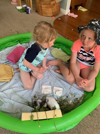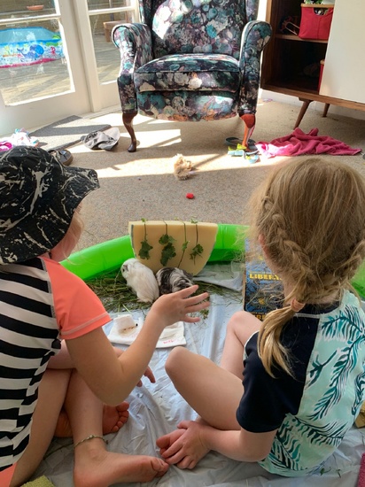 Guinea pig sitting, they are all thrilled to bits to be looking after these little cuties! Snow and Meme.