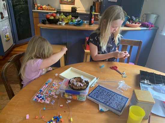 Lockdown day five: morning walk (Gini) & run (Tom) collected more succulents for Oli's garden, moves our ideas chalk list to our window kanban board (thanks Lauren) played zoom Pictionary, mummy cut the hedges and started pebbling around cherry tree, finished with beading and playing outside. No rain!
