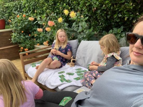 Lockdown day twenty eight: a lovely walk with the big girls on Wrights hill and came home to a surprise cake and knitted top for juni and bula. Thanks Nan!