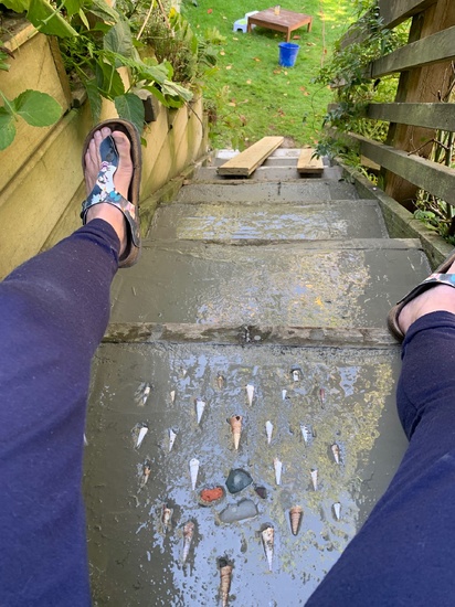 Lockdown day eleven: diy central. Concreting steps and weeding everywhere! Disco and apple strudel to finish.