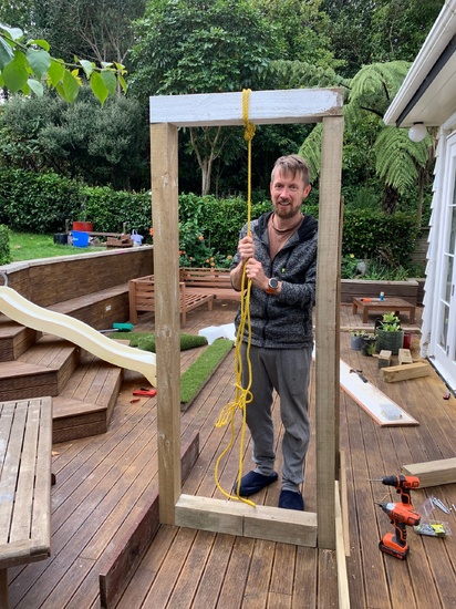 Lockdown day seventeen: Tom makes outdoor obstacle course, cleaning more retaining timber.