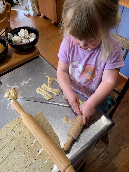 Not more Lockdown day forty nine! Girls started an epic game, lasted all day very intense. Jun bug helped make lavosh.