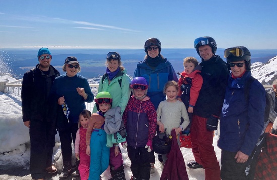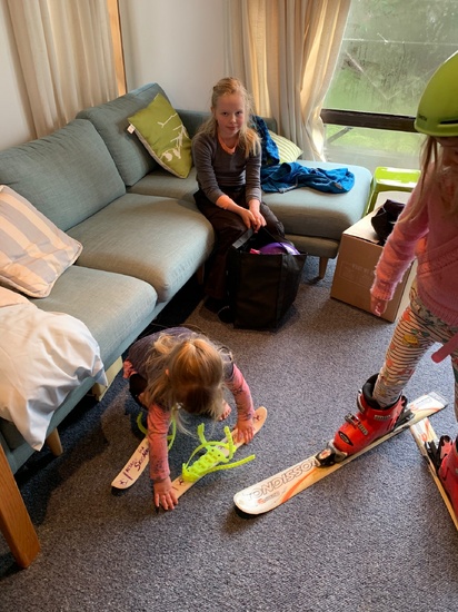 Oli and Milla skied today. High winds so only Waka was open and we took the kids down... it took a long time but Oli did it! Rangateria chair was more fun for them though.
