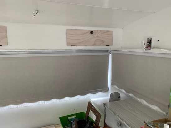 Blinds all complete and working! Who knew normal blockout fabric would work! Fringe looks perfectly retro.