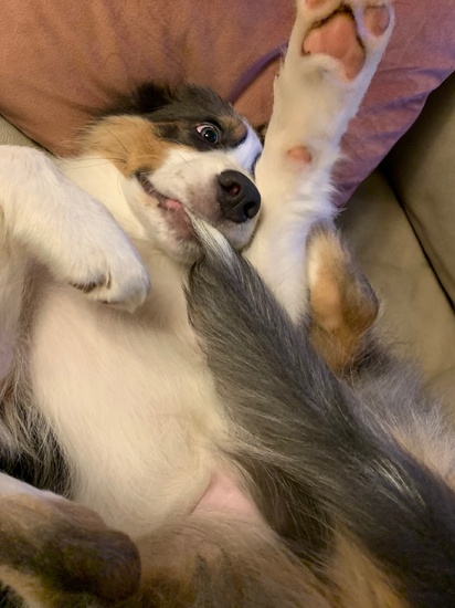 Lead training with my side kick. Zobe also got cuddles on the bed.