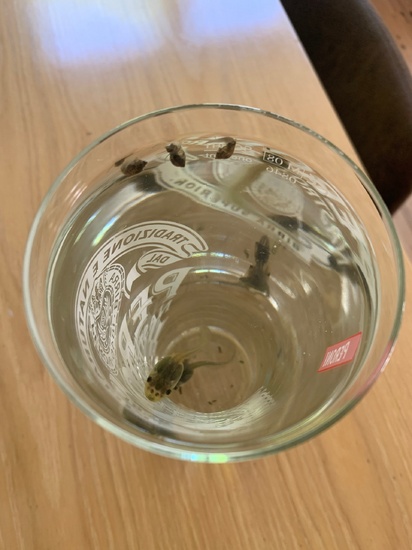 Our baby tadpoles are still alive! With 3 water snails as bonus! Now when do the legs come…